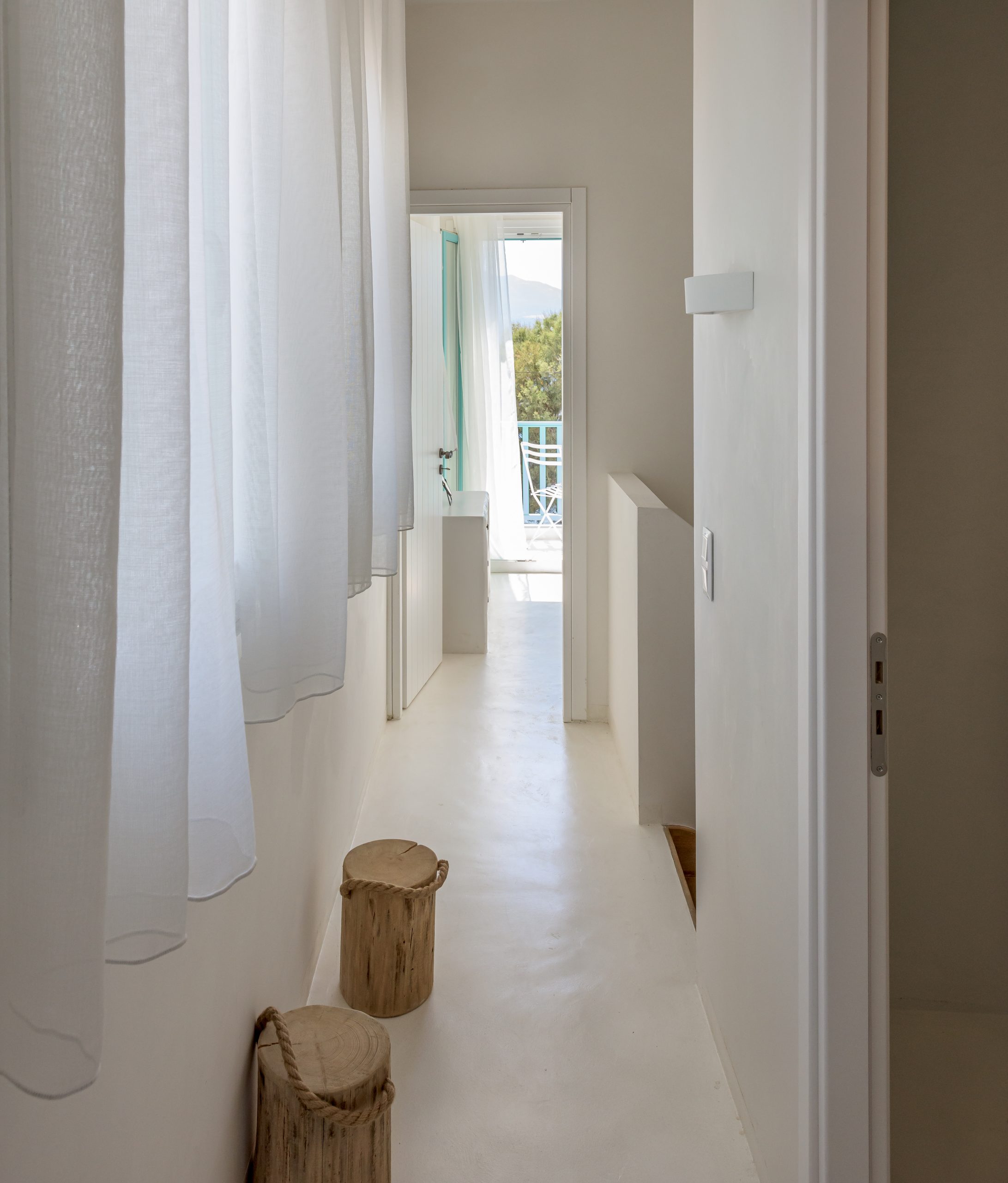 Continuing the narrative of this diverse colour palette, the interiors of each residence display a careful balance of minimalist Cycladic architecture and sophisticated contemporary design. Open-plan layouts invite ample natural light, enhancing the spaciousness and underlining the unique hues chosen for each home. The combination of locally-sourced materials, such as lime plaster, wood, and stone, introduces an element of sustainability while contributing to the authentic Greek aesthetic. Bespoke furniture pieces, hand-woven rugs, and Greek artisan-crafted accessories add another layer of local character, making each space truly distinct and inviting.