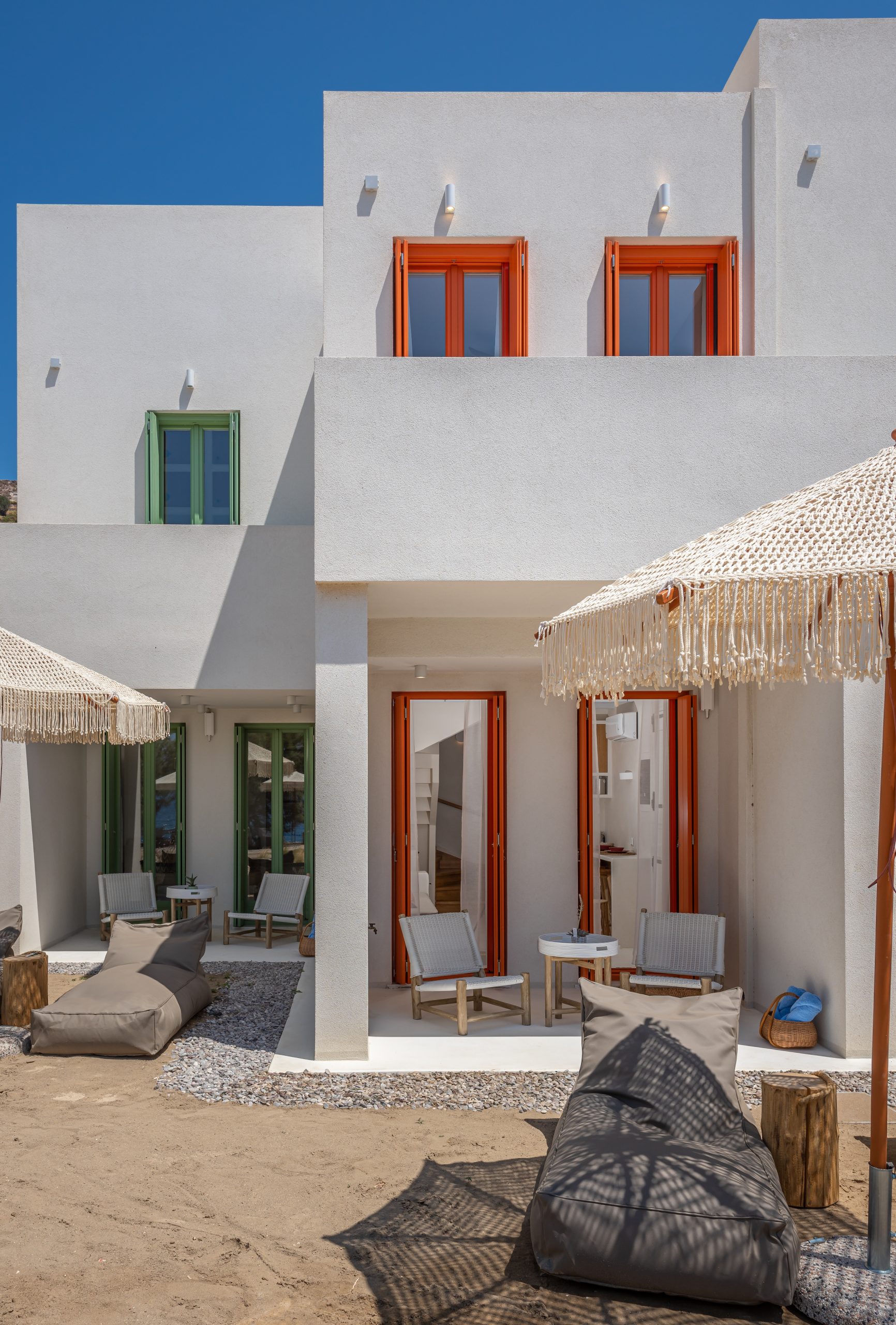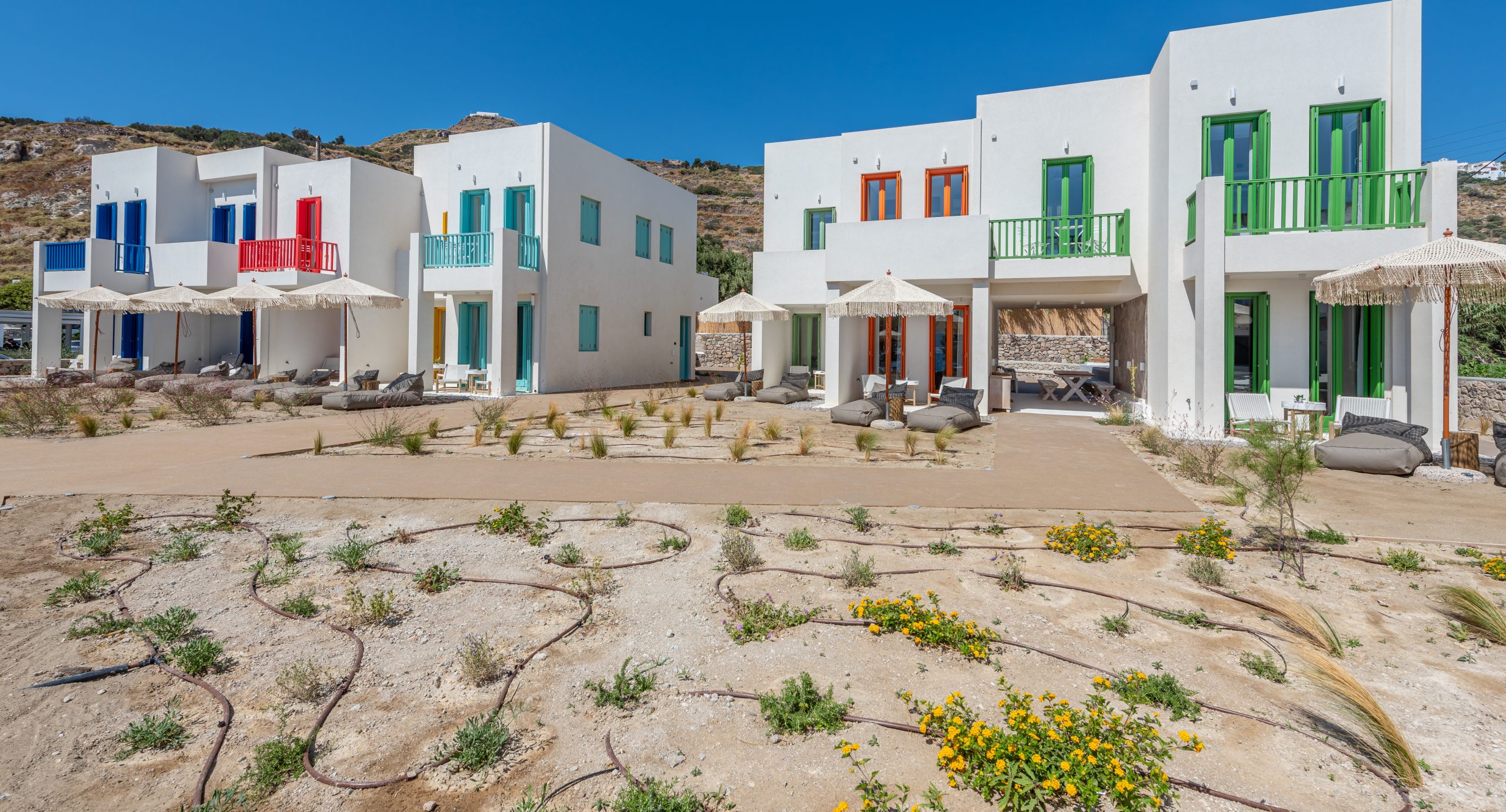 Continuing the narrative of this diverse colour palette, the interiors of each residence display a careful balance of minimalist Cycladic architecture and sophisticated contemporary design. Open-plan layouts invite ample natural light, enhancing the spaciousness and underlining the unique hues chosen for each home. The combination of locally-sourced materials, such as lime plaster, wood, and stone, introduces an element of sustainability while contributing to the authentic Greek aesthetic. Bespoke furniture pieces, hand-woven rugs, and Greek artisan-crafted accessories add another layer of local character, making each space truly distinct and inviting.